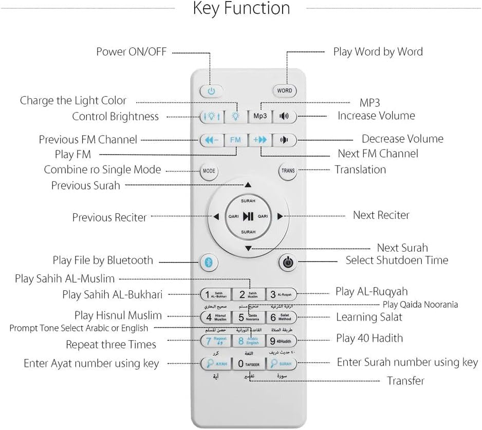 - Multifunctional Smart Control Speaker:It's a 5 - in - 1 device: Quran speaker, wireless music player, hands - free phone, bedside lamp, and color - changing night light.